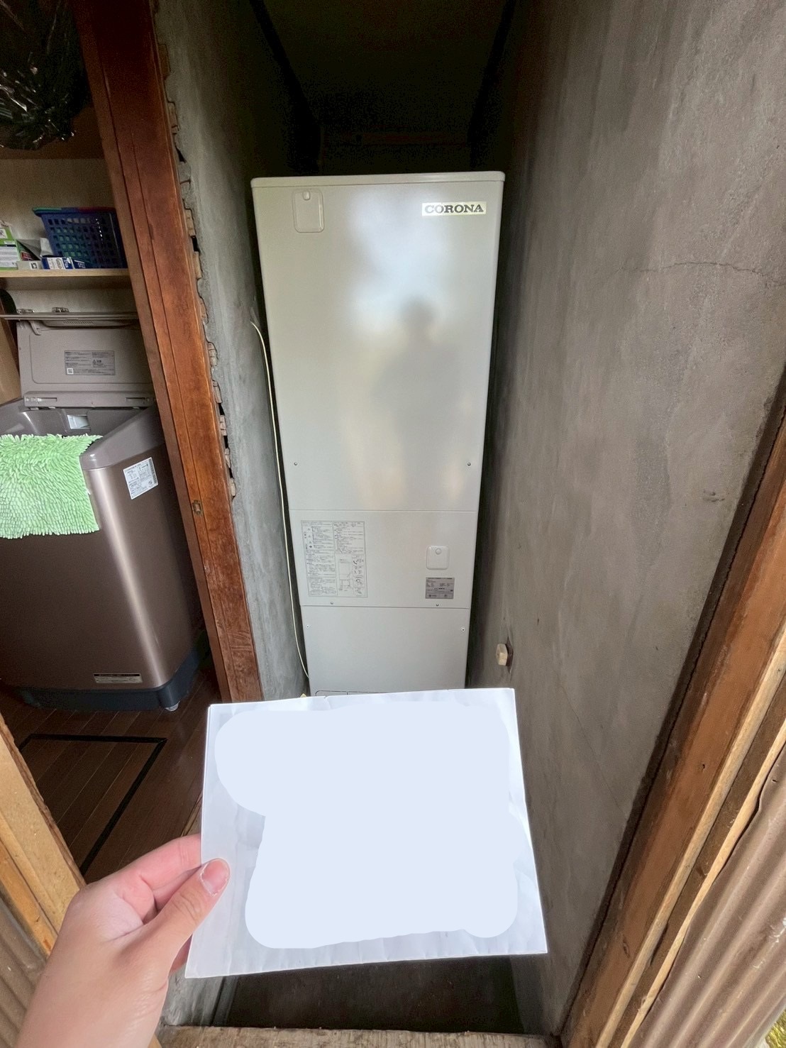 エコキュートの寸法はそこまで大きく変化していないので、空間の寸法を測って設置できることを確認しました!