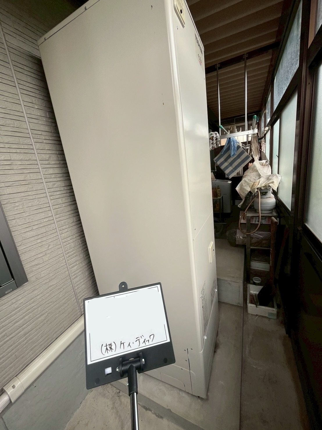 給湯省エネ事業もあるので補助金が出ますよーとお話して現地を確認すると、そこには電気温水器も設置されていました。