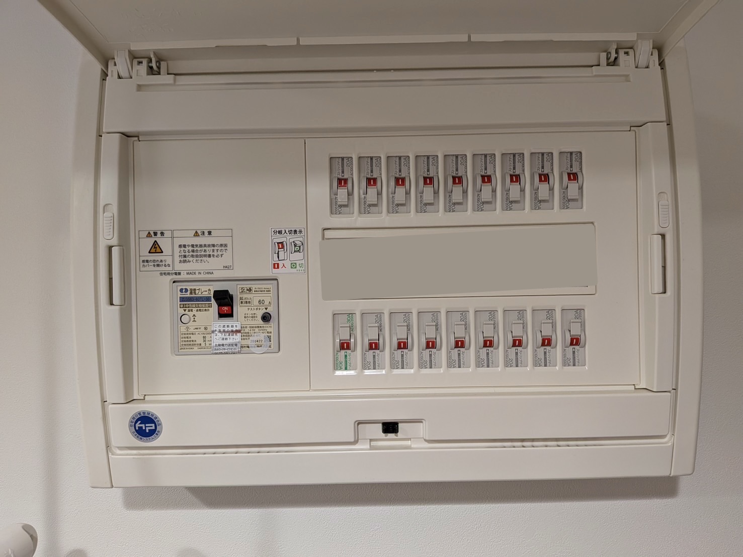 ちなみに、分電盤のカバーを外した写真をご覧いただくと...
