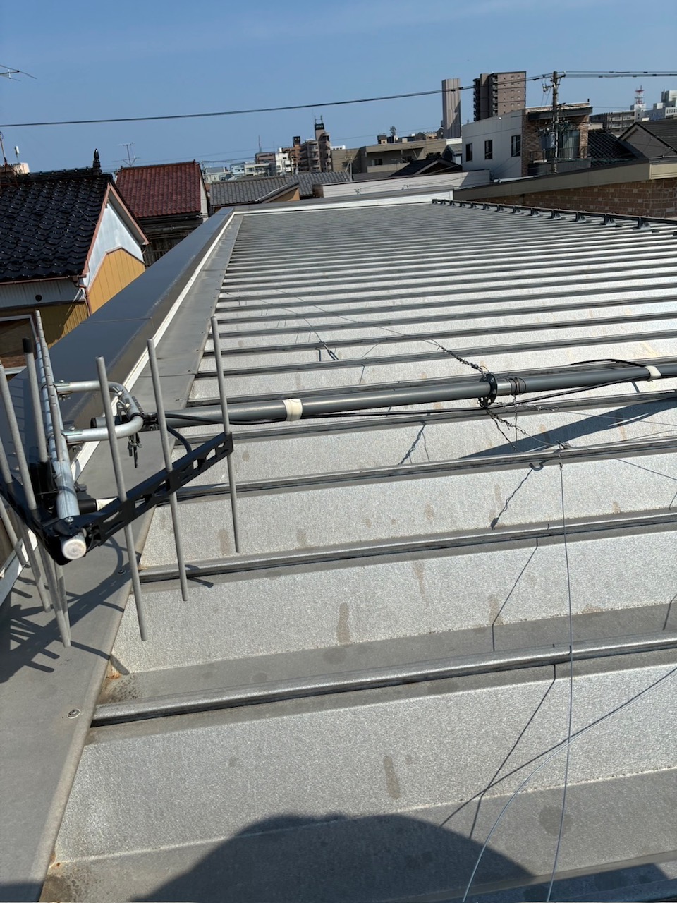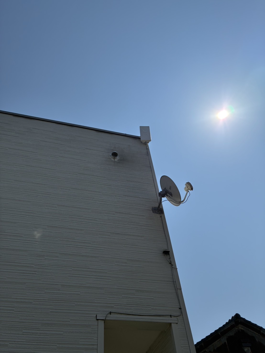 最初は折板屋根にアンテナを設置していましたが転倒してしまいましたので、平面アンテナに変更して設置場所も変更しました。